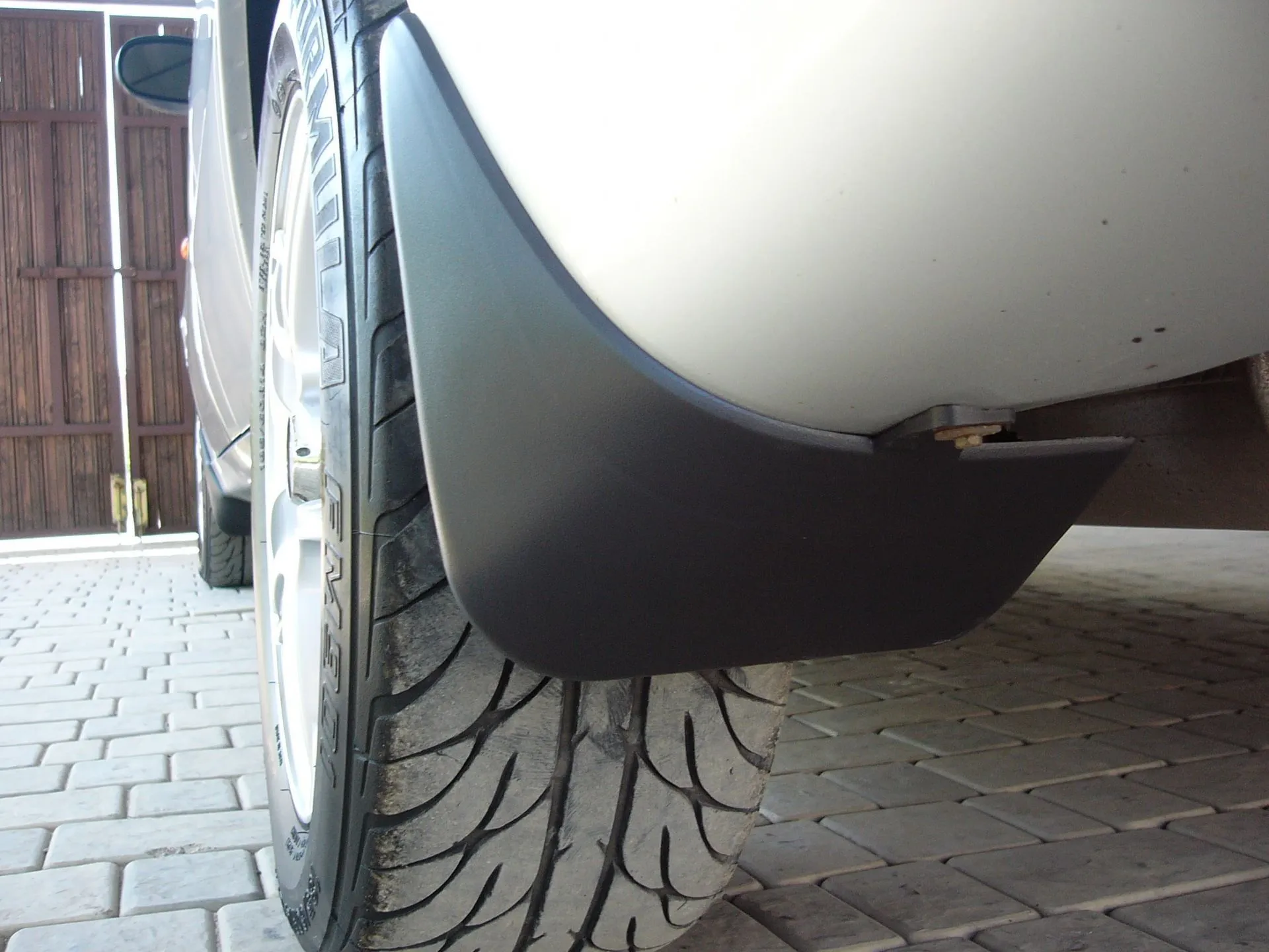 - Резина имеет большой вес, ввиду чего «фартук» может оторваться по ходу движения авто.