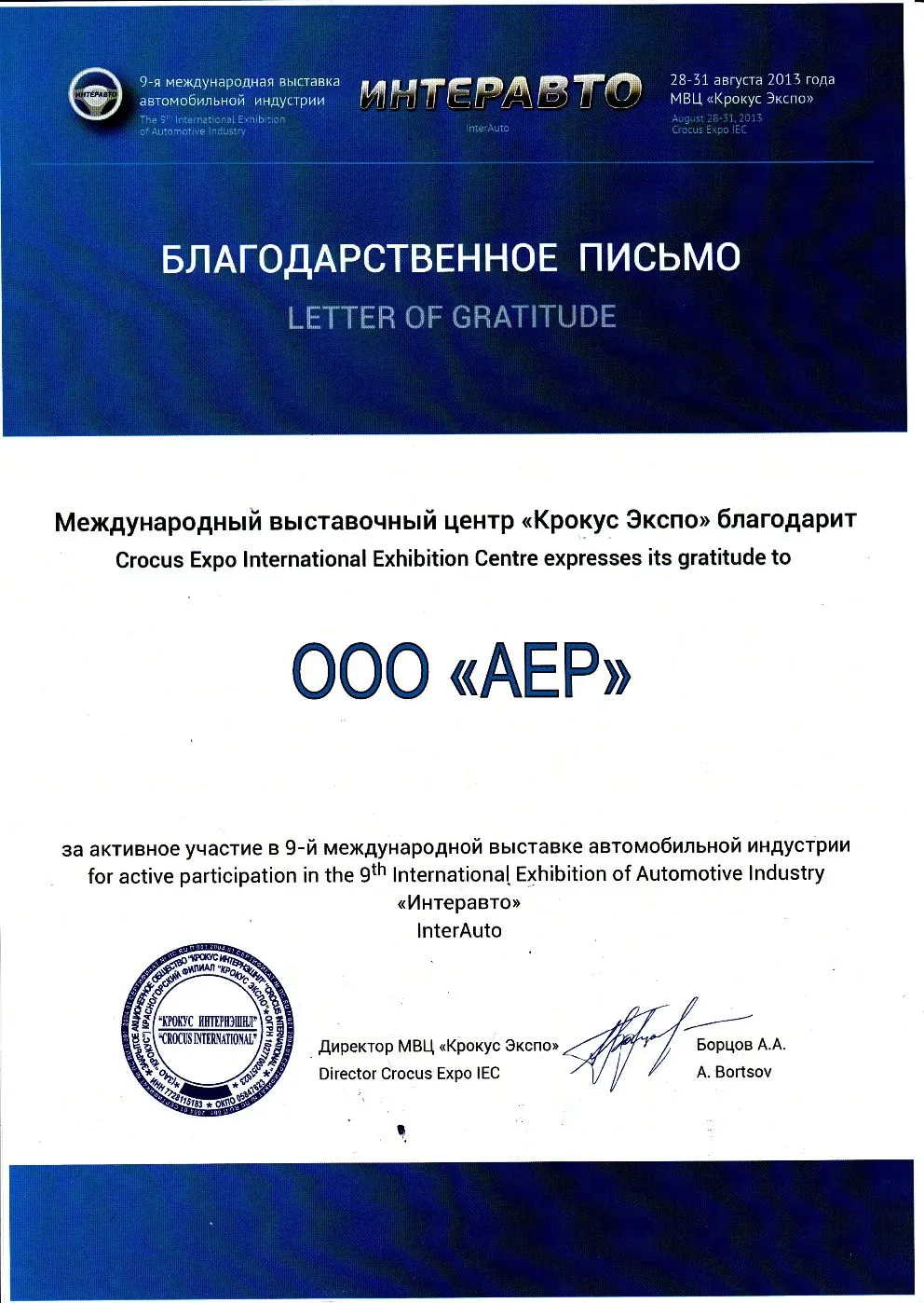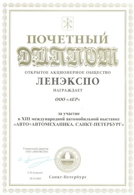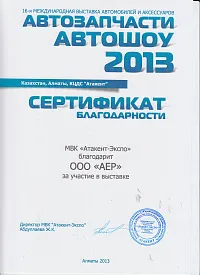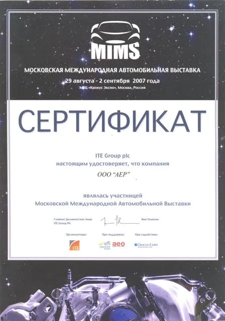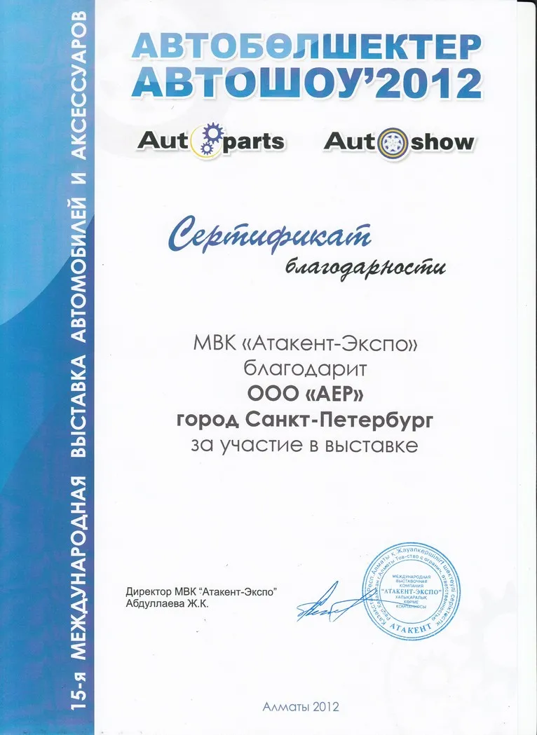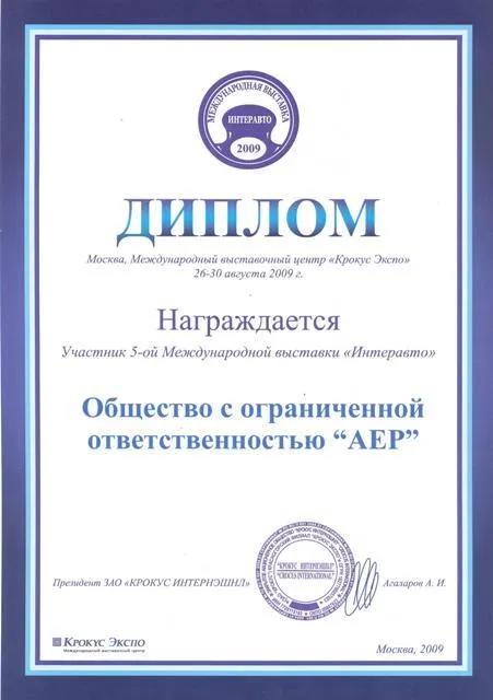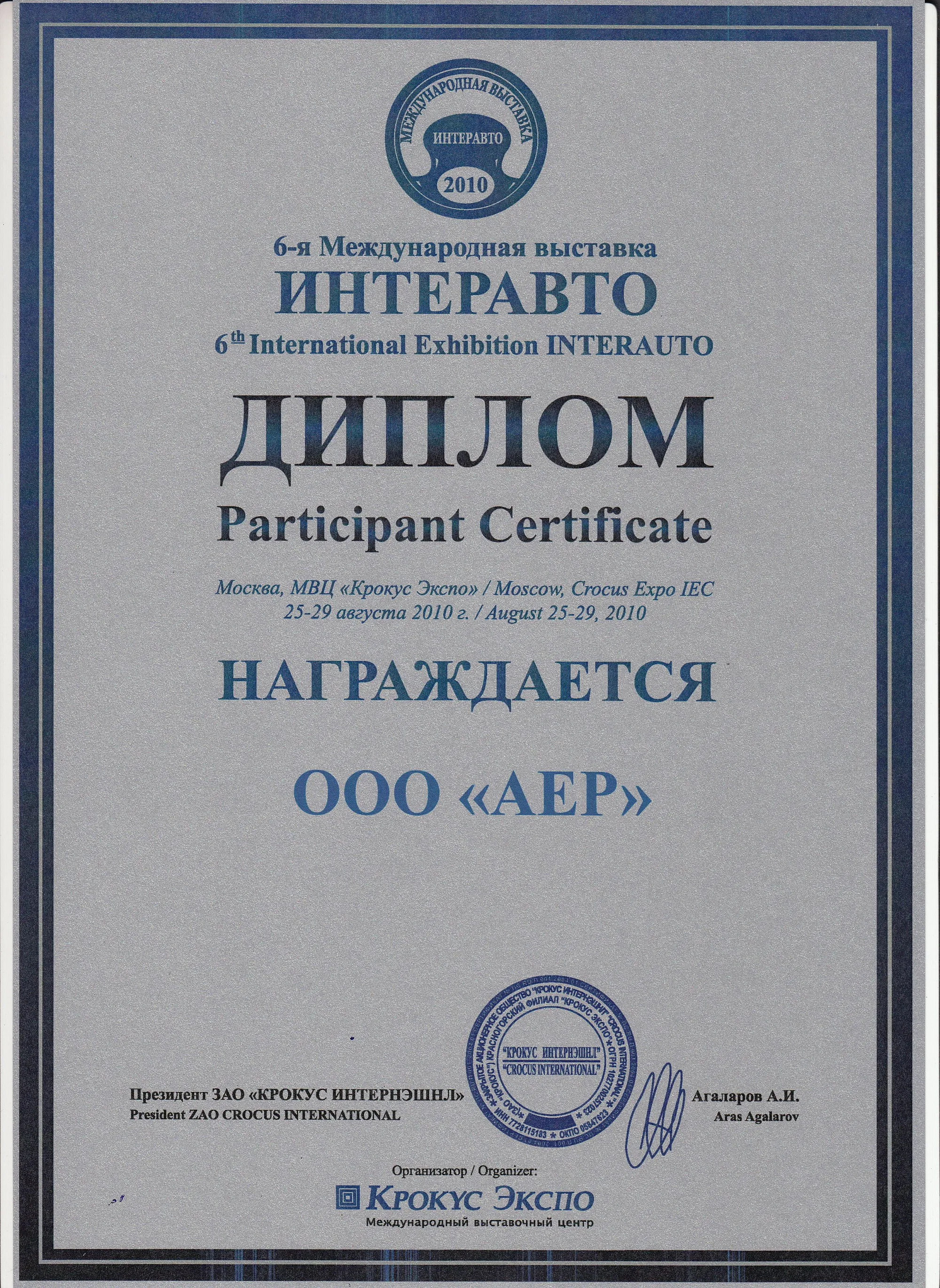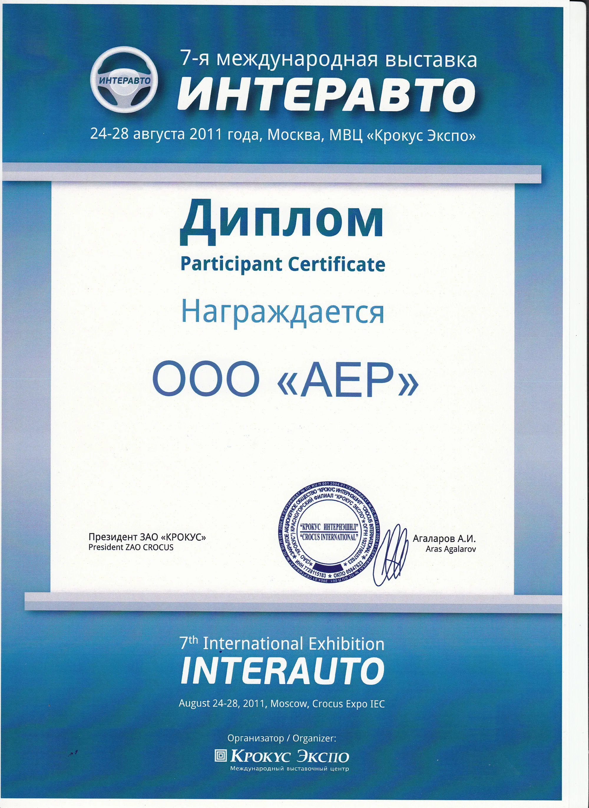 Компания "АЕР" ежегодно принимает участие в специализированных выставках производителей автоаксессуаров. По результатам участия в выставках наша компания получила следующие дипломы и сертификаты.