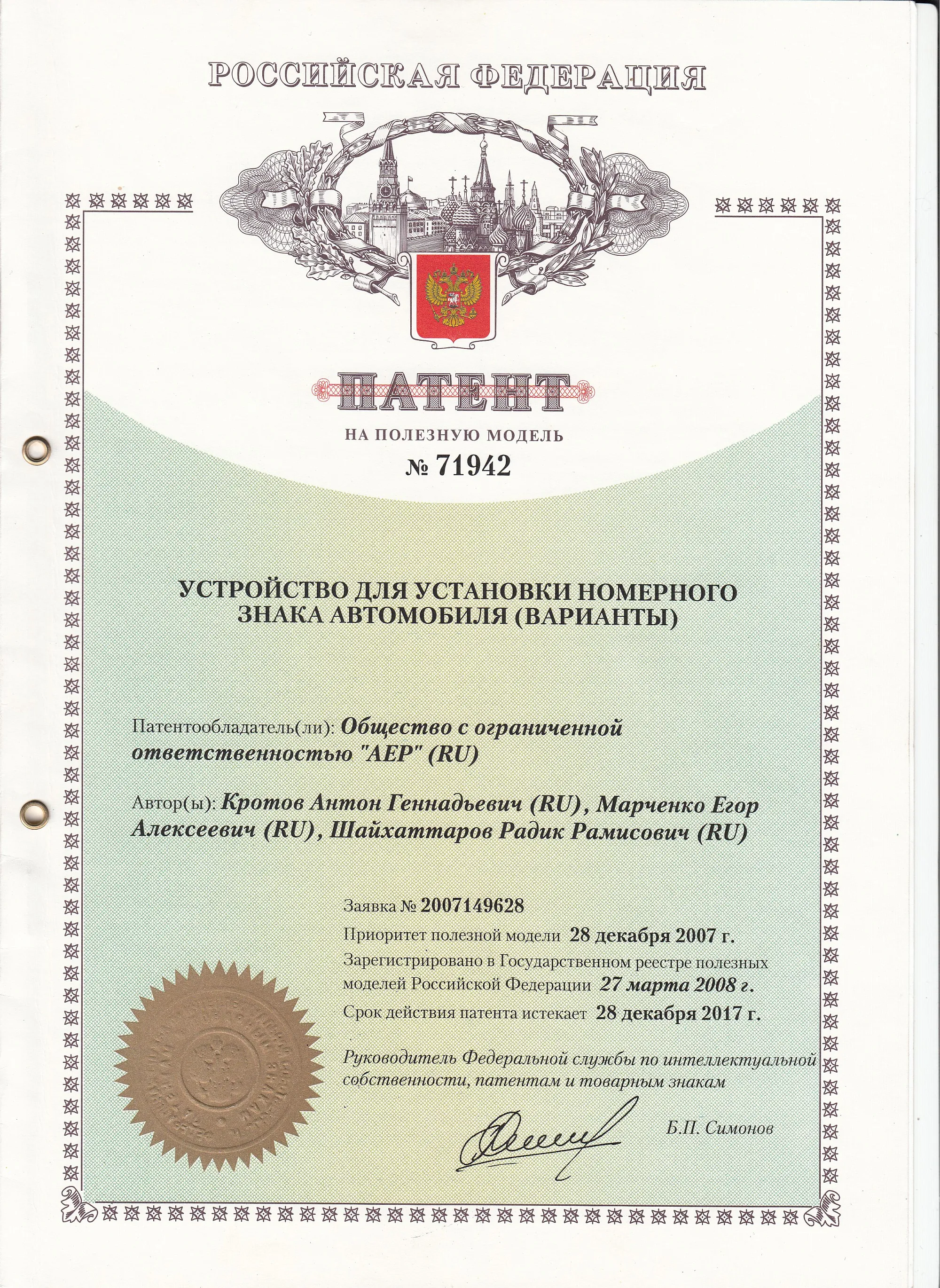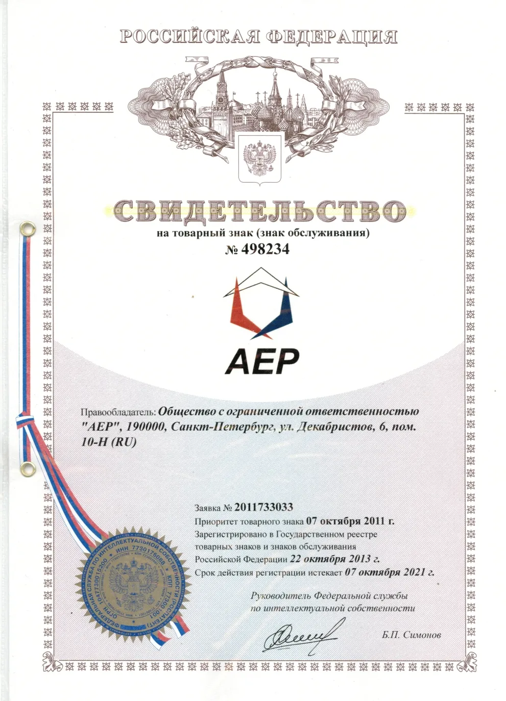 Ряд изобретений запатентованы и являются интеллектуальной собственностью компании «АЕР». Также обращаем ваше внимание: 22 октября 2013 года на всю продукцию нашего производства официально зарегистрирован товарный знак «АЕР», что является дополнительным гарантом качества наших изделий.