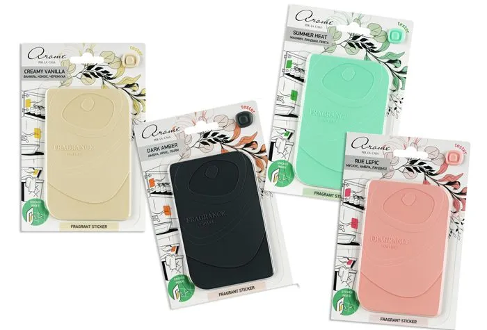 Представляем новинку! Ароматизатор «Fragrant Sticker» – это сухой ароматизатор для дома. Освежитель представляет собой плоское прямоугольное изделие из эластичного пластика. При изготовлении используется инновационная технология ароматизации изделия парфюмерной отдушкой.